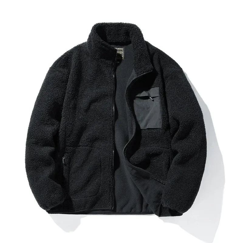 Jaqueta estilo esportivo com design vintage, perfeita para o outono e inverno. Forrada com fleece tipo "lamb" para aquecimento e conforto em dias frios.