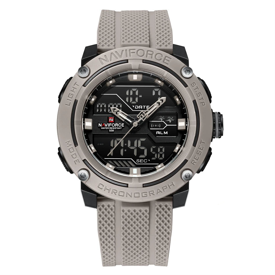 Descubra a versatilidade perfeita para esportes e estilo urbano com o NAVIFORCE NF7114, um relógio digital analógico que combina tecnologia avançada e design robusto para o homem moderno.