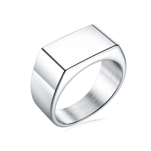 Com acabamento metálico brilhante e design retangular marcante, esse anel estilo signet é perfeito para destacar sua personalidade com um toque de ousadia. Ideal para festas e produções urbanas com atitude.